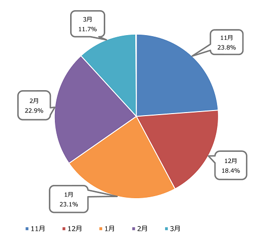 事業復活支援金 売上減少対象月の割合(対象月:2021年11月~2022年3月)