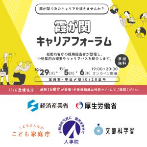 中央省庁への転職をご検討中の方を対象に、「霞が関キャリアフォーラム」をオンラインで開催します! |
