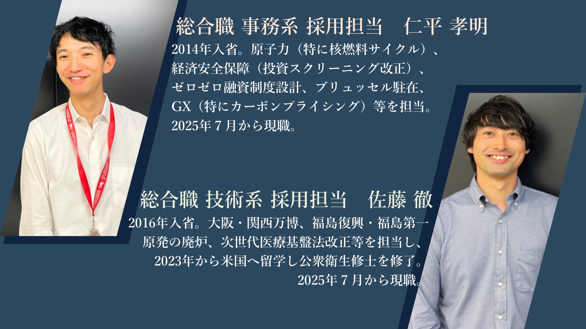 当日は、採用担当のキャリアなどに関するご質問のほか、経済産業省のミッションやカルチャー、キャリアパスといった一般的なご質問も大歓迎です。是非、奮ってご参加いただければ幸いです。