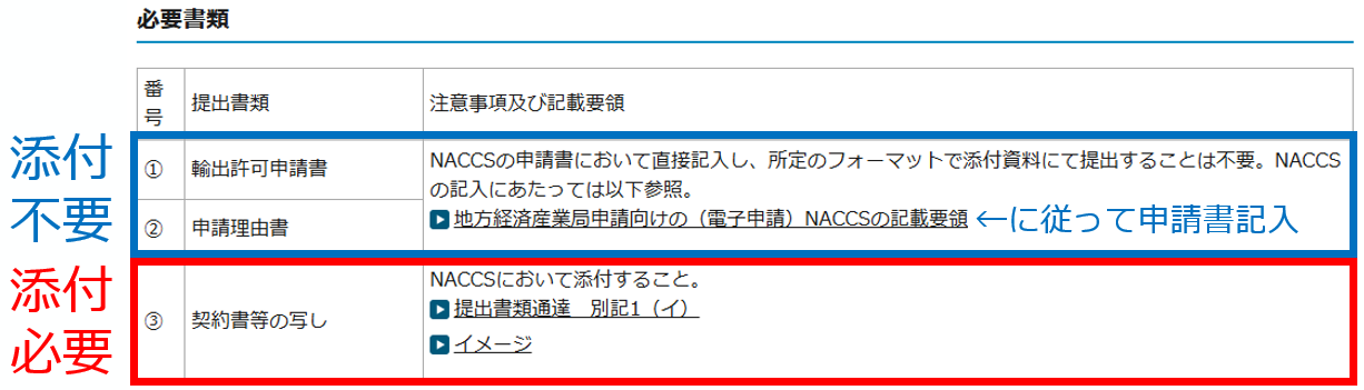 - 同ページで「NACCSにおいて添付すること」という指示がある書類については、アップロードファイルとしてください(アップロードの方法はP81参照)。