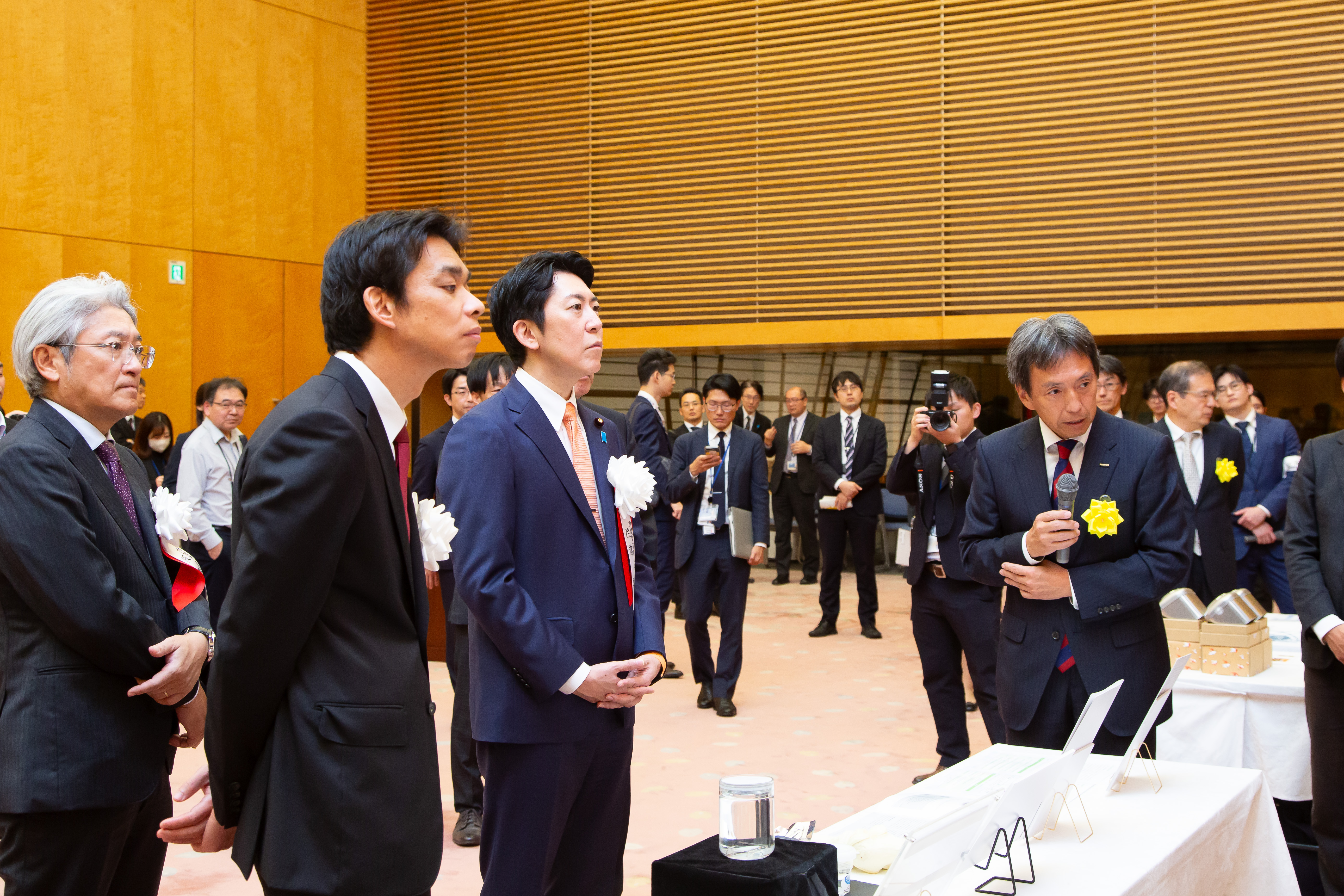 今回、会場内には、内閣総理大臣表彰受賞者をはじめとした一部の表彰受賞者の功績を紹介するための展示ブースが設けられました。佐藤内閣官房副長官、井野経済産業副大臣らが各ブースを観覧するとともに、受賞者に祝意を伝えました。