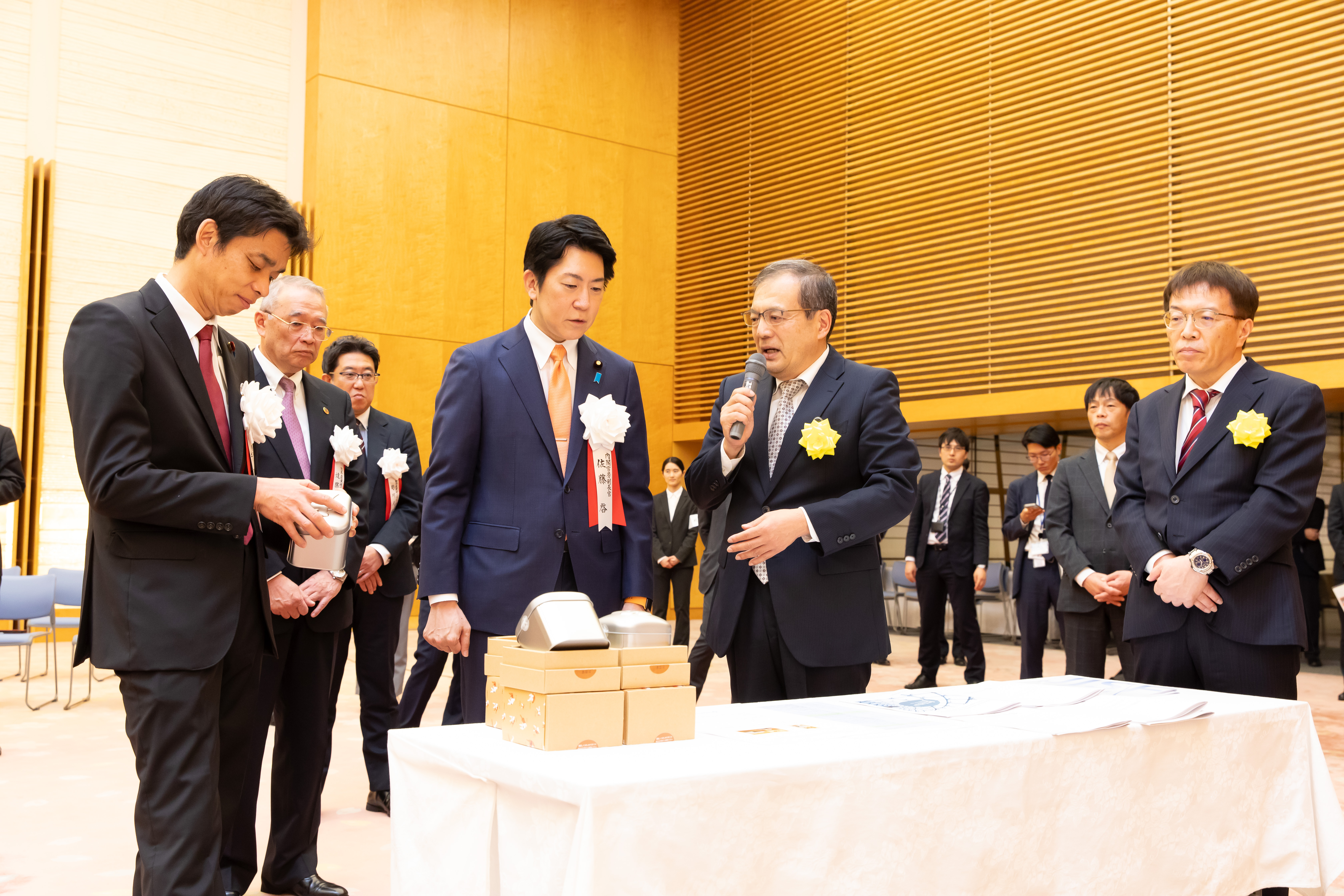 表彰式では、冒頭、佐藤内閣官房副長官が内閣総理大臣式辞を代読しました。その中では、受賞者である稲葉氏の御功績に心からの敬意と感謝が表されるとともに、「標準化は古来より国家繁栄の重要な礎であり続けてきた」、「高市政権においても、(中略)国際標準化を重要な柱として位置付けている」、「政府としても、標準化の取組を更に強化していく」として、政府の標準化政策に関する意気込みが示されました。