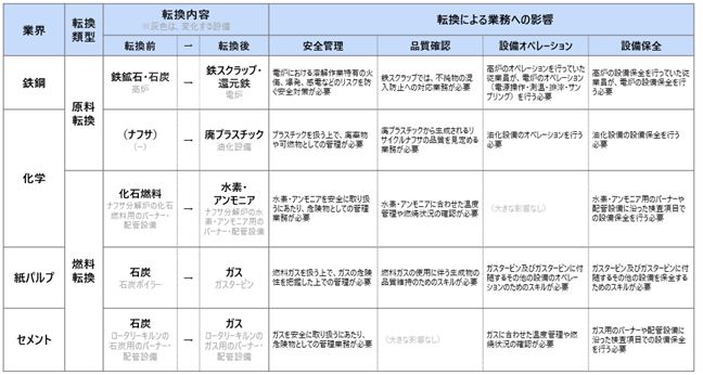 本ガイドでは、鉄鋼、化学、紙パルプ、セメントの4業種を対象に、GXに伴う製造プロセス転換として主に想定される原料や燃料の転換内容と、業務への影響について整理しました。