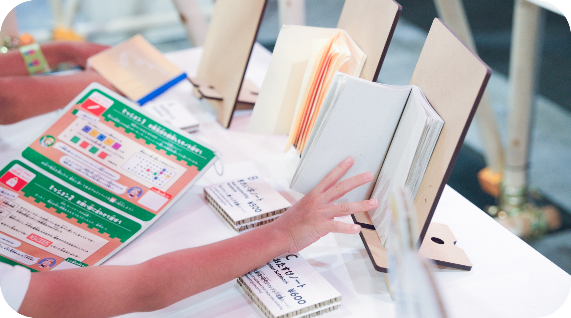 In the mission to find notebooks made from recycled materials, children used the hint “rough-textured paper” and felt the pages to identify the right ones.