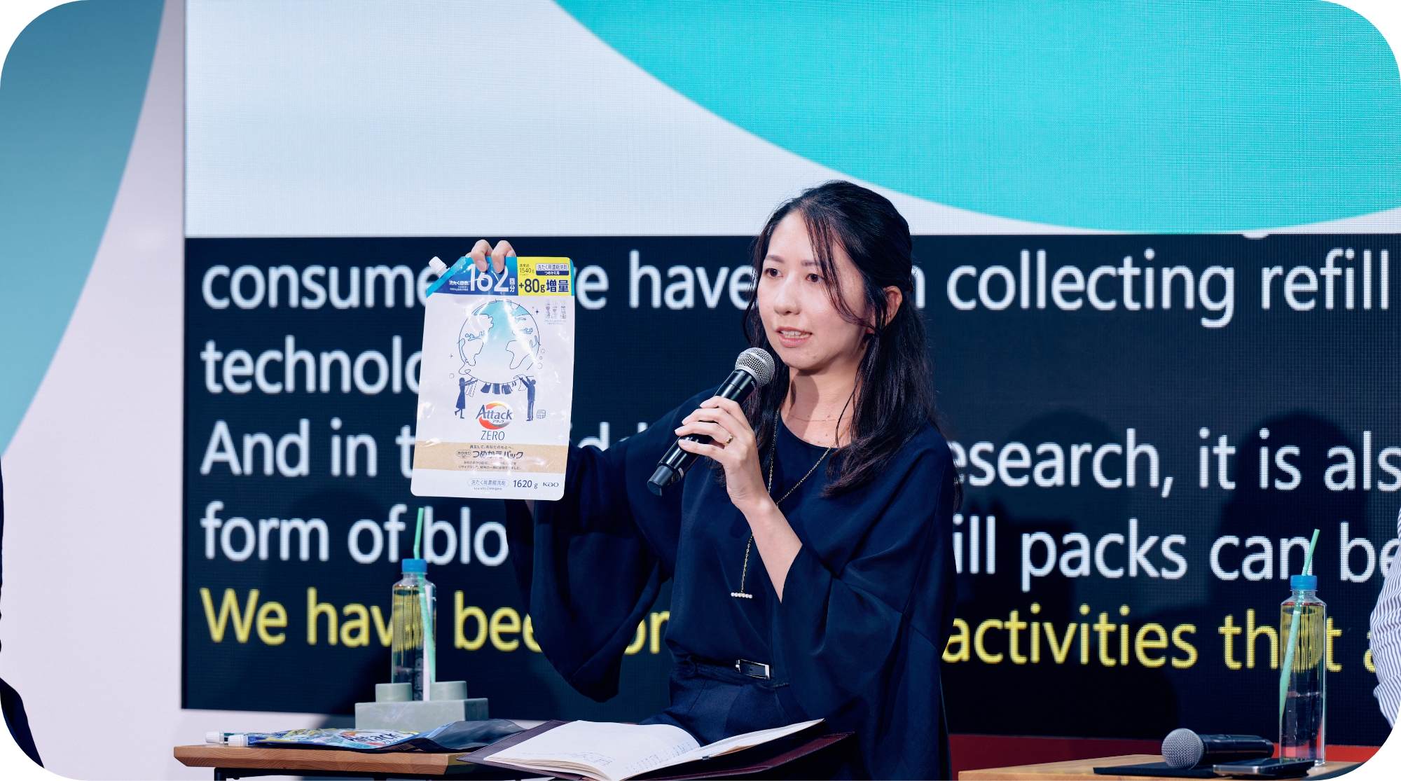 而且花王还发起“RecyCreation”挑战,回收用完的补充装,再次还原为商品的材料。此前花王一直在实践“循环可视化”的活动,例如使包装重生为积木等产品,而目前已经开发出“横向回收”技术,把包装再次还原为补充装,这样就能长久持续利用资源。