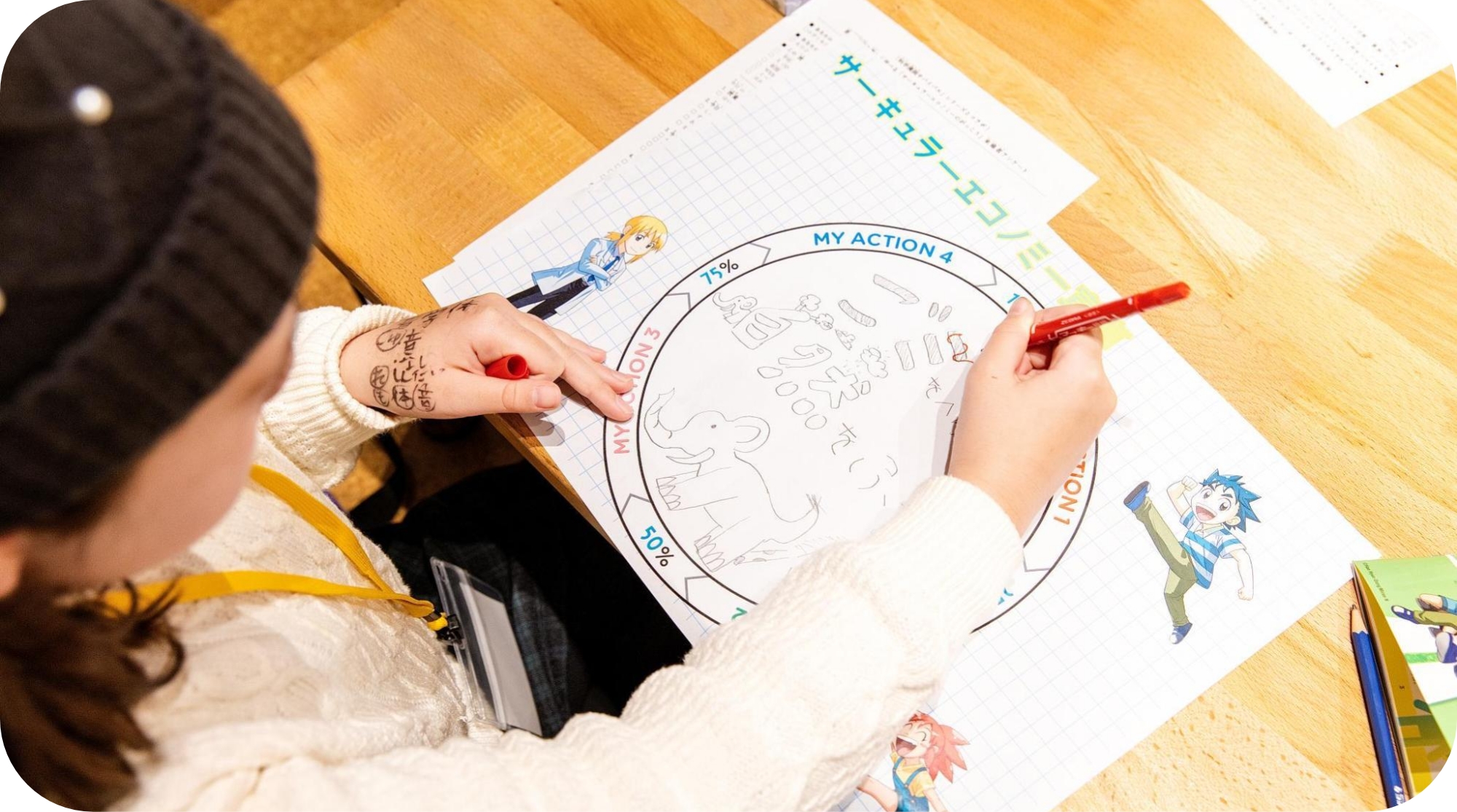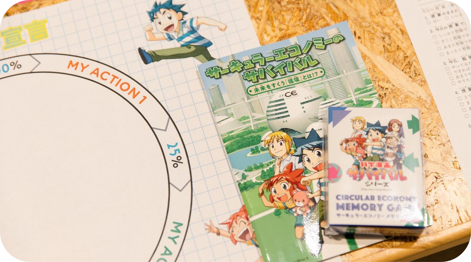 正因如此,我们希望让肩负未来的孩子们在早期开始熟悉循环经济,并把他们培养成能把循环经济当作是常态的成年人。在这一想法下,通过漫画和卡牌游戏寓教于乐的“循环经济学校”应运而生。