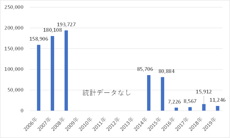 米国の輸入量は措置開始後(2009年以降)に急速に減少し、2019年では僅か年間1,000万パウンド(dry pounds)となっています。(図4)