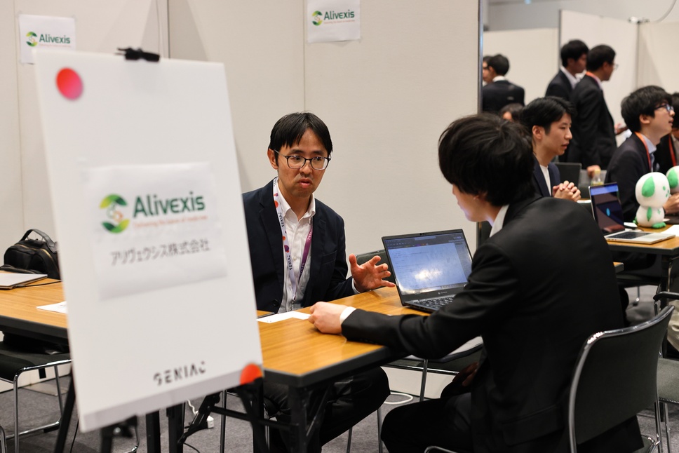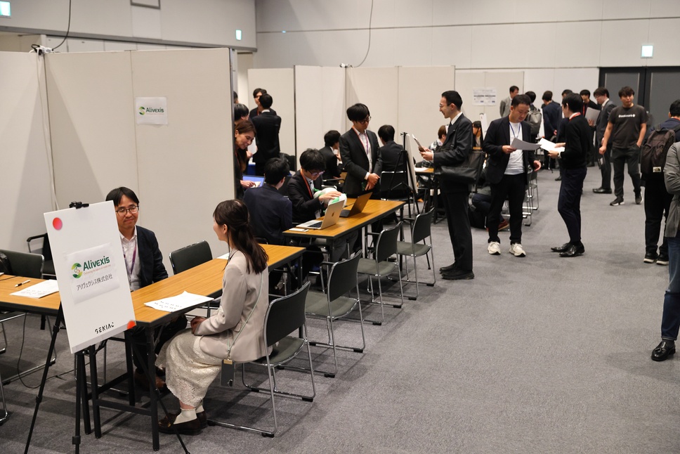 招待制となった本イベントでは、ユーザー企業28社のほか、ベンチャーキャピタルやコミュニティ運営を支援する組織を含めて計35社が参加しました。マッチングタイムでは、事業プレゼンを終えた各開発事業者のブースで開発中のAIモデルや提供サービスのデモンストレーションが行われ、ユーザー企業の担当者から様々な質問が寄せられ、具体的な商談に進むケースも多く見られました。