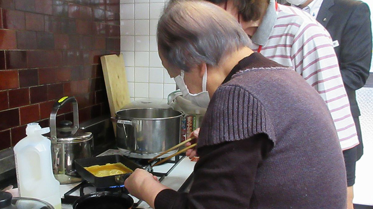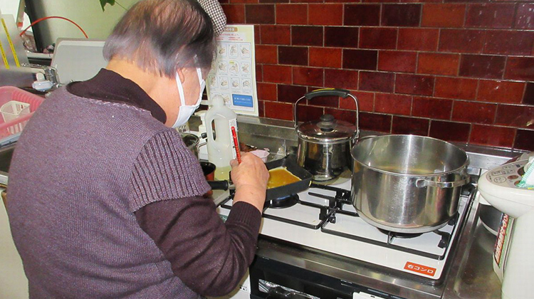 ![]() 「卵焼き」を作るデイサービスのご利用者(朝日新聞社撮影) |