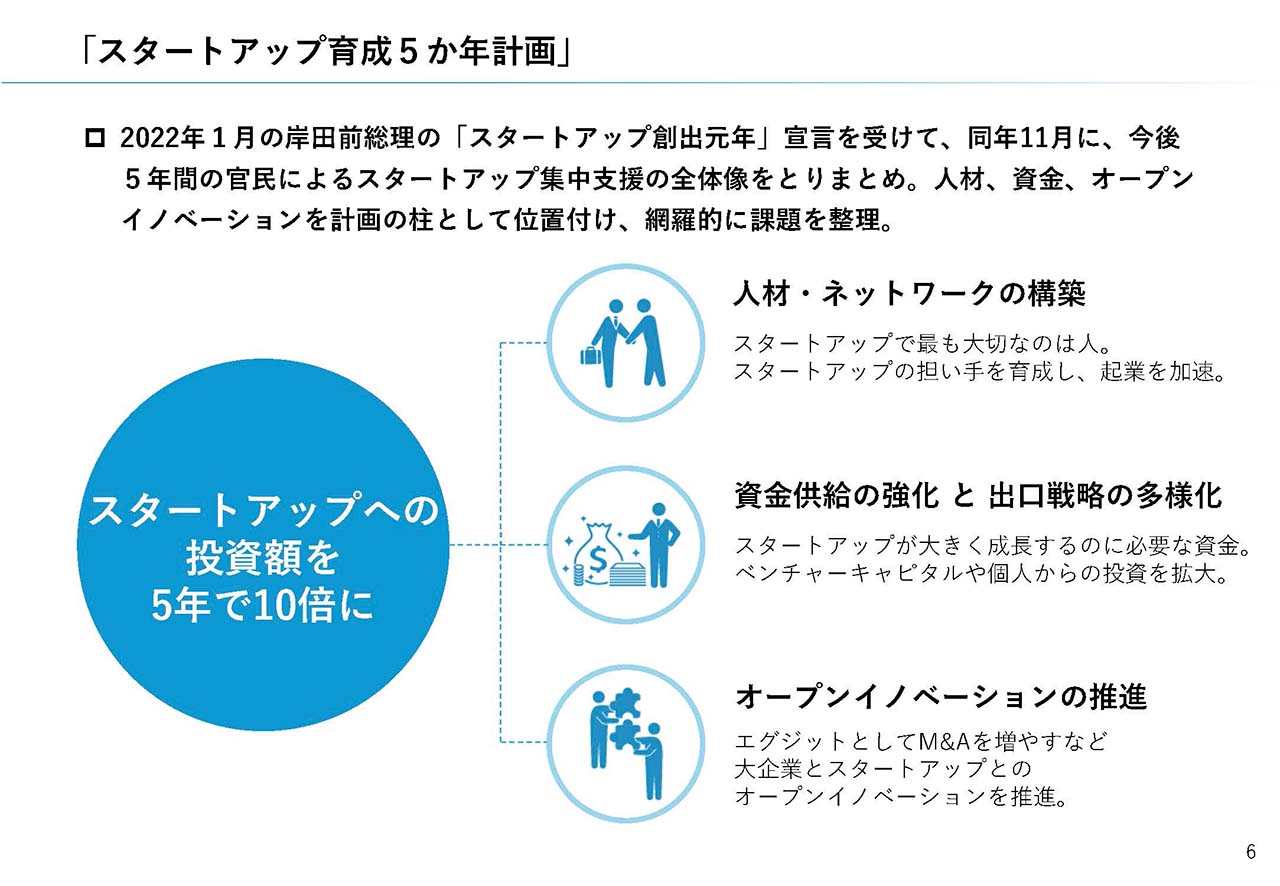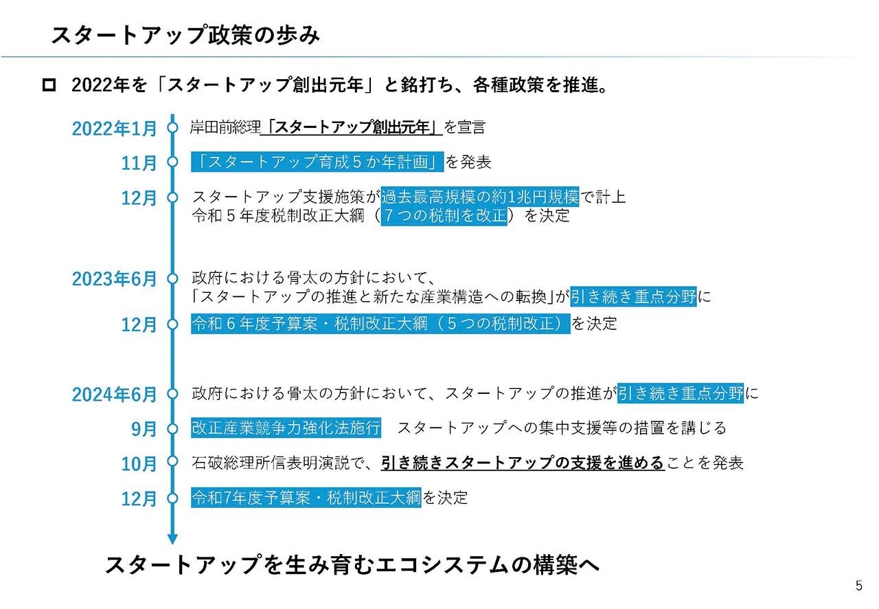 2022年11月、5年間のスタートアップ政策の全体像をとりまとめ。