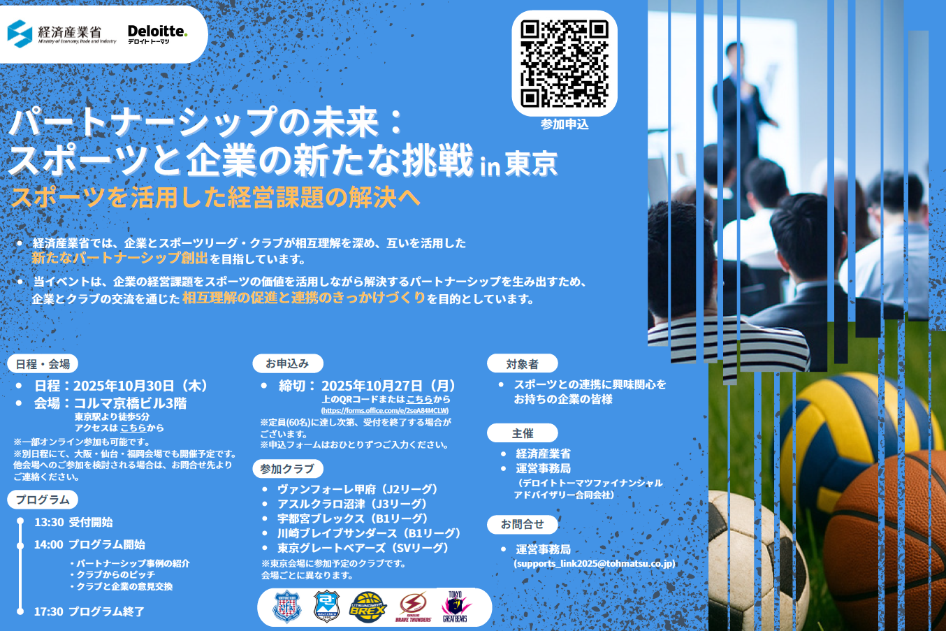 イベントの詳細はこちら パートナーシップの未来:スポーツと企業の新たな挑戦in東京 *参加費は無料
