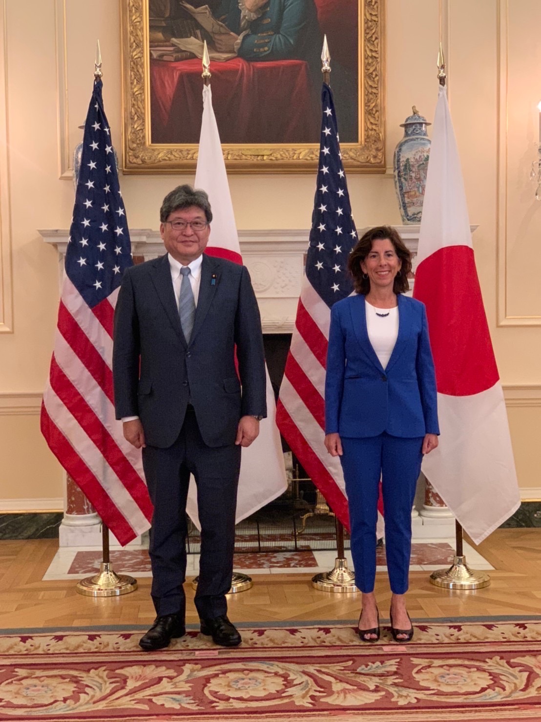 レモンド商務長官と会談を行い、経済版2+2の成果を確認するとともに、半導体協力、インド太平洋経済枠組み(IPEF)などについて議論しました。
