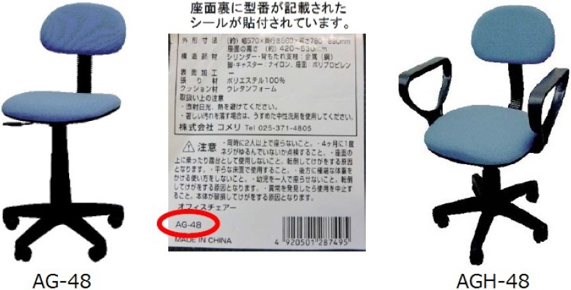 | オフィスチェアーひじ付 AGH-48 | 4920501287501 | 2004年12月 〜 2013年7月 | 5,700台 |