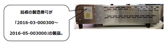 製品名 型番 製造番号 販売期間 対象台数 極少煙 セラグリル ECGH-100J 2016-03-000300