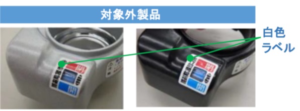 対象外製品の表示窓部のラベル色は「白色」です。