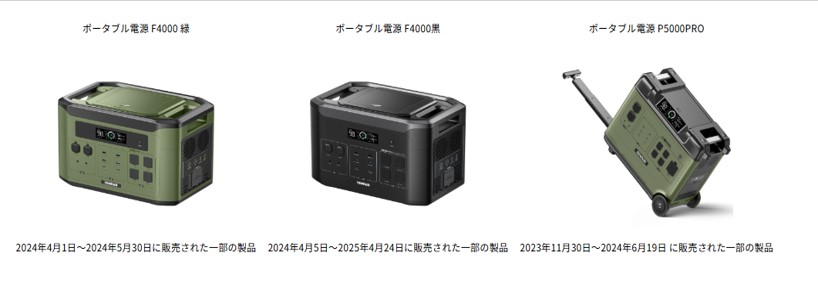 | EENOUR ポータブル電源 | P5000PRO | こちらをご覧ください | 2023年11月30日~2024年6月19日 | 83台 |