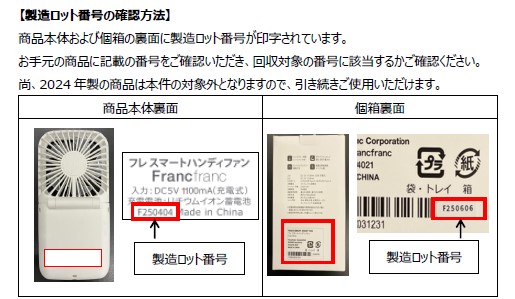 - 製品名、型番、色、品番、販売期間及び対象台数