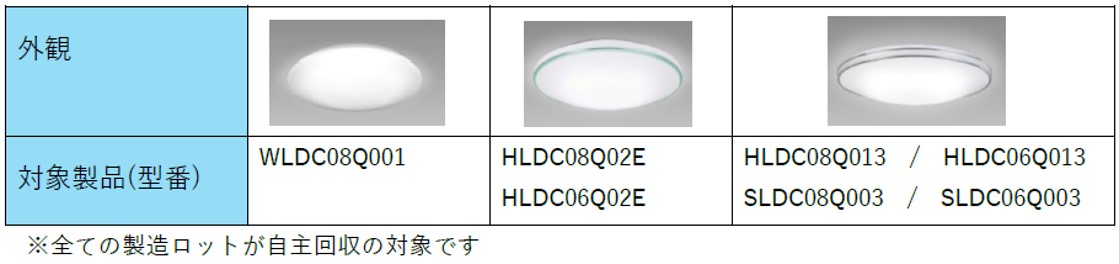 | 防災用LEDシーリング | 6434417 | WLDC08Q001 | 4904323789078 | 2021年9月~2024年11月 | 338台 |