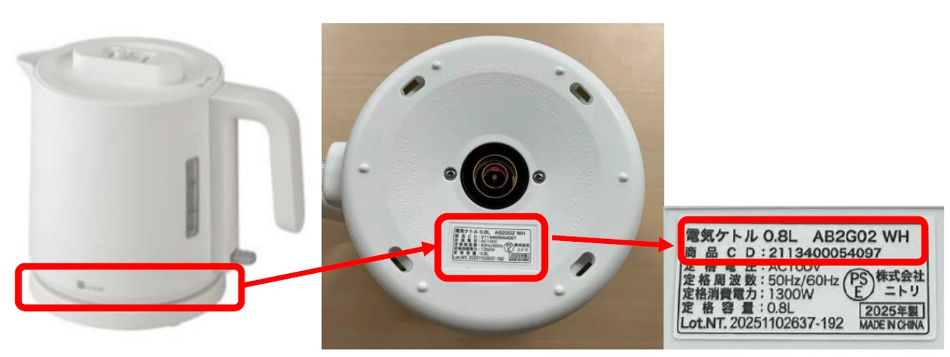| デンキケトル0.8L(4色) | ①デンキケトル 0.8L AB2G02WH ②デンキケトル 0.8L AB2G02BK ③デンキケトル 0.8L AB2G02GY ④デンキケトル 0.8L AB2G02MO |