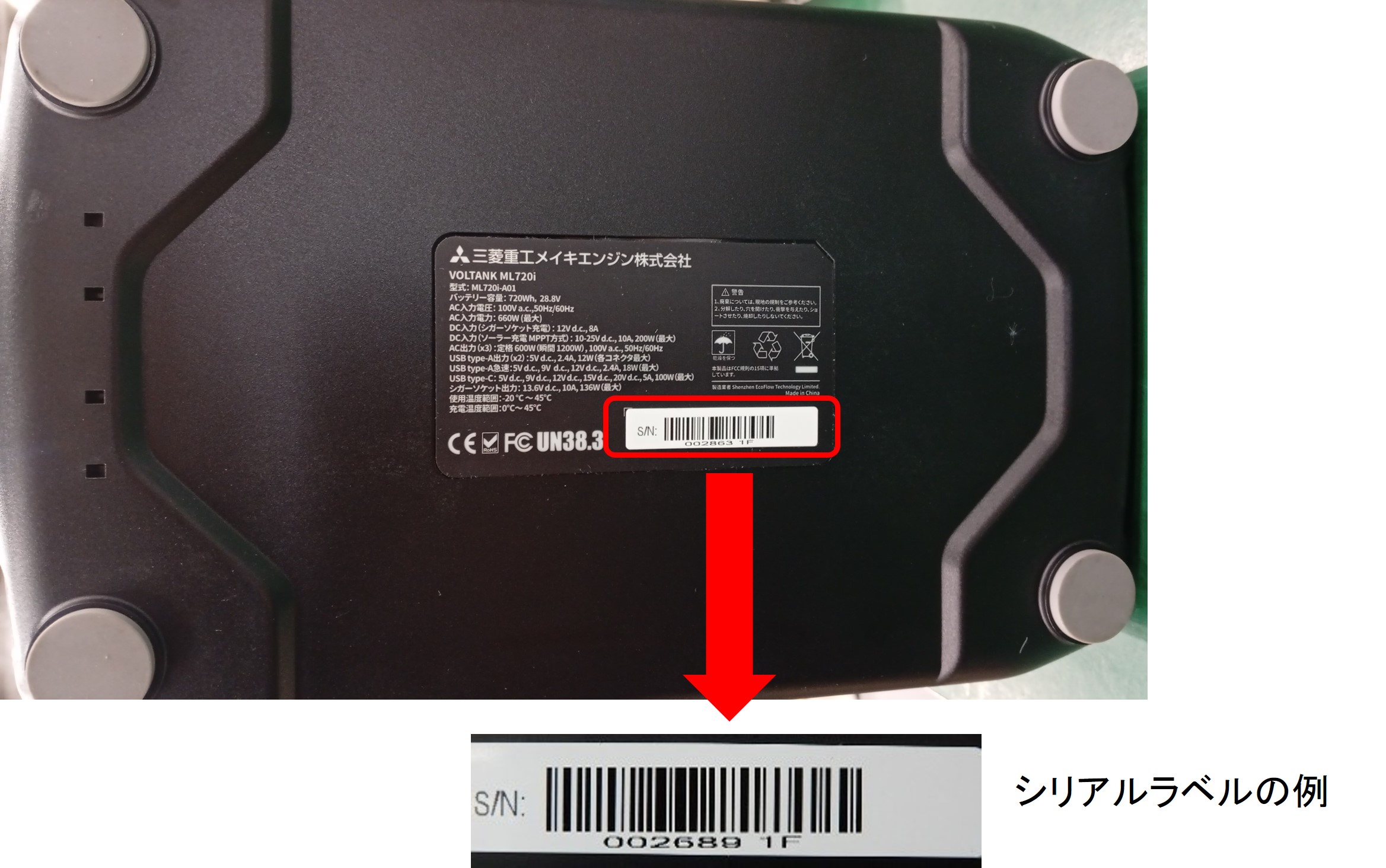 底面及びシリアルラベル