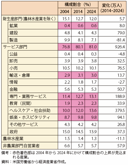 第Ⅰ-2-1-3-18表 米国の2024年の雇用構成見通し