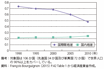 第Ⅱ-1-2-1-5図 世界全体での国際間及び国内間格差の傾向