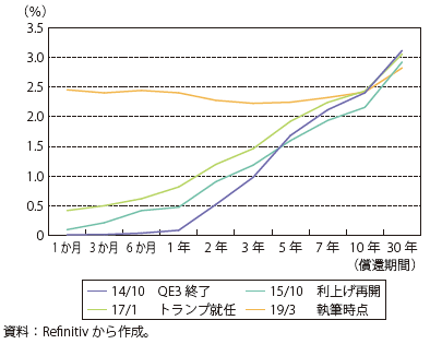 2019年3月の連邦準備制度理事会(FOMC)では、バランスシートの縮小計画の終了を決定し、利上げも見送っている。同FOMC後の会見において、パウエル議長は、米国経済について、2019年も引き続き堅調なペースで成長するとの見通しを示しつつも、2018年の非常に力強いペースよりは遅い可能性があるとした。リスク要因として英国のEU離脱や米中貿易摩擦などを挙げた。今後の利上げについては、雇用とインフレ率の見通しを注視していく48としている。