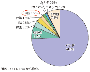 第Ⅱ-1-2-18図 米国のインドからの付加価値輸入(直接の相手国・地域)