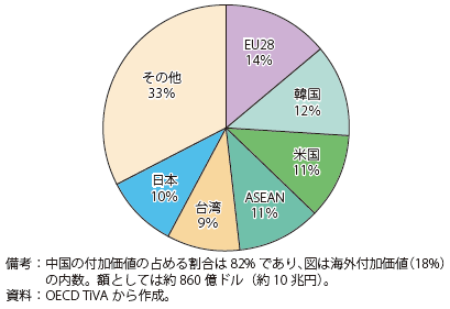 第Ⅱ-1-2-30図 中国の日本からの付加価値輸入(直接の相手国・地域)