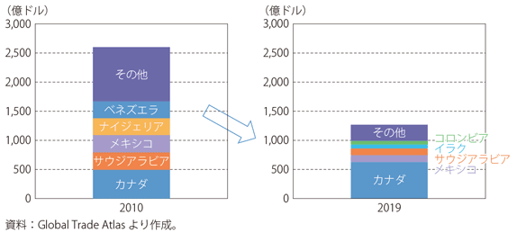 第Ⅰ-2-2-11図 米国の上位5か国の原油輸入額