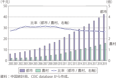 第Ⅰ-2-3-33図 中国の都市・農村別一人当たり可処分所得の推移