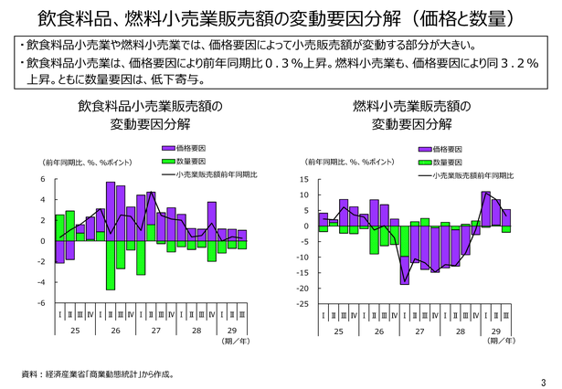 飲食料品、燃料の小売業ともに価格要因が押し上げ、数量要因の動きには違いも