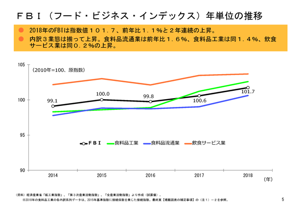 2018年のFBIは指数値101.7、前年比1.1%と2年連続の上昇となりました。