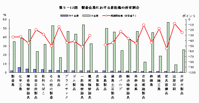 - ・製造企業における特許権を所有している割合は、中小企業が3.1%、大企業が50.2%となり、大企業との規模間格差は▲47.1ポイントとなった。